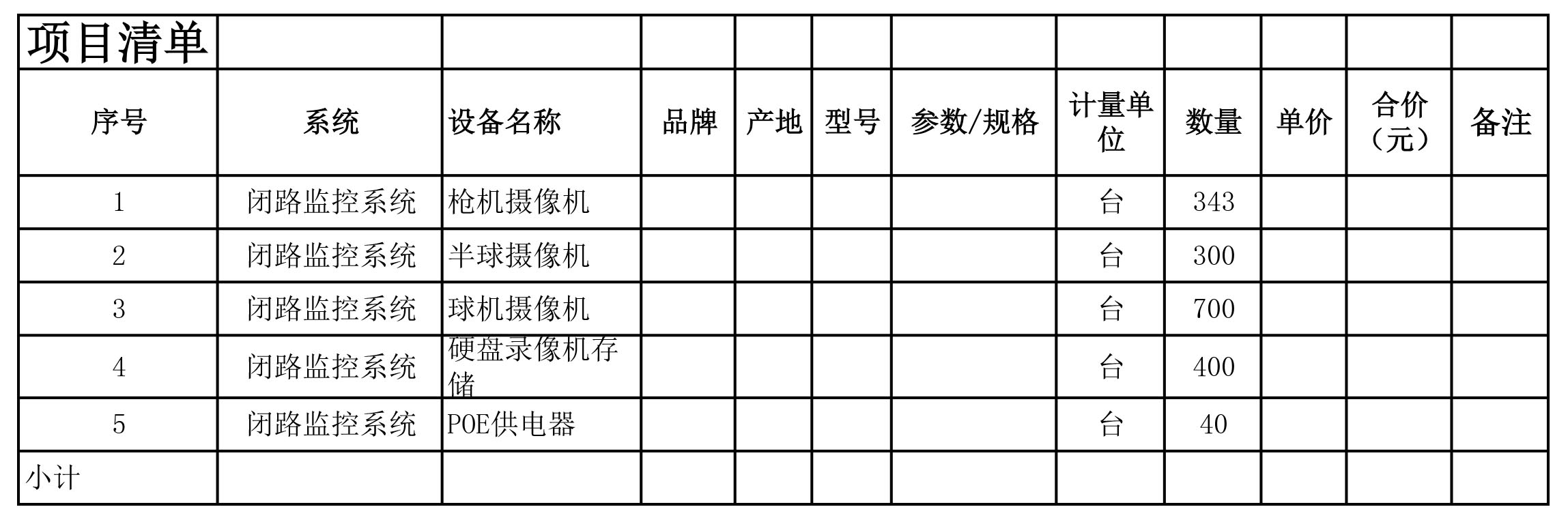 您可以在这里上传需要报价的清单excel文档 (包括系统名称,设备,品牌,数量等重要信息)